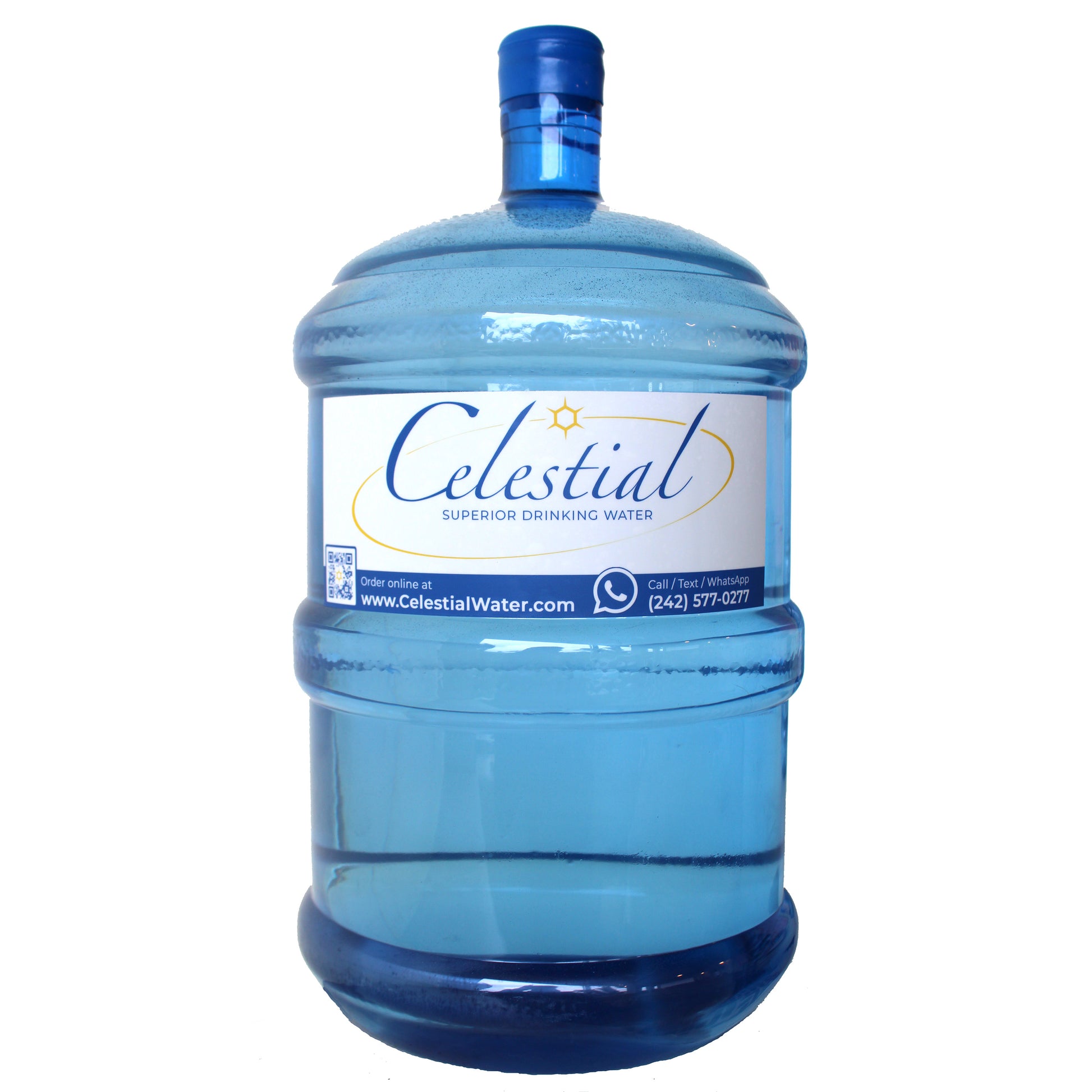 Sturdy BPA-free 5 gallon water bottle with snap-lock reusable lid. Comes filled with 5 gallons Celestial Water.